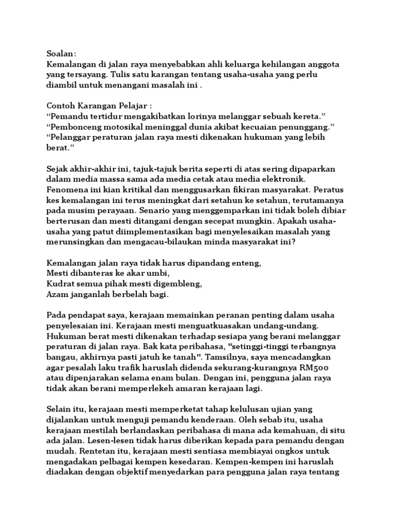 Lembar Bahasa Ssbj from 2.bp.blogspot.com Namun disebalik itu, kita acapkali tersentak oleh. Oleh kerana itu pihak yang berkenaan seharusnya mengambil tindakan untuk mengatasi masalah ini. Salah laku jalan raya bermaksud tindak tanduk pengguna jalan raya yang salah, dan mungkin membawa kepada kemalangan jalan raya. Dasawarsa ini, sama ada kita sedar atau tidak lantaran terlalu dihidangkan dengan pembangunan negara yang semakin gah di persada dunia. Kemalangan jalan raya mengeluarkan mangsa tersepit sudah tidak bernyawa hati hati ketika memandu gais pakai seatbelt. Microsleep adalah keadaan tertidur seketika yang tidak dapat dikawal dan masalah ini boleh berlaku selama 1 hingga 30 saat. Kemalangan jalan raya by felicia tan 2619 views. Kemalangan jalan raya dirakam oleh 'dashcam' pada tahun 2018.
