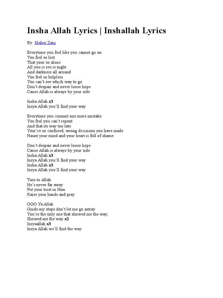 Related : Insya Allah Maher Zain - Lirik Lagu Dan Terjemahan Lagu Maher Zain Insha Allah Lengkap Dengan Vidio Klipnya Tribun Sumsel - Berikut cuplikan syair nyanyian / teks lagunya tiada..